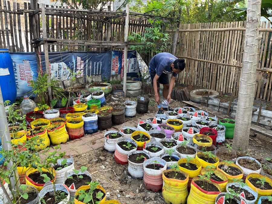 Mahasiswa KKN UNS lakukan kegiatan kolaborasi dengan Warga Kampung Njawani dalam program revitalisasi Kebun Sayur Organik Warga